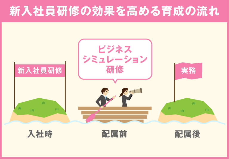 ⇒新入社員研修でインプット後、実務に近い形で“業務遂行”することで、現場対応力を強化できます。